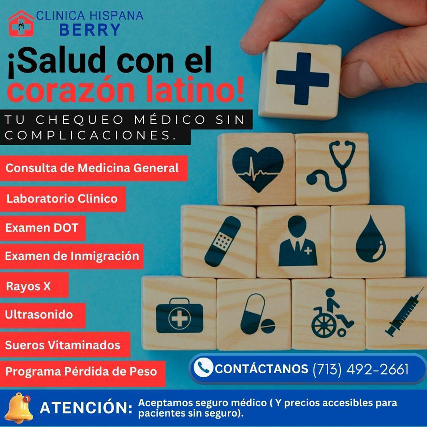 Actualmente contamos con múltiples aseguranzas aliadas para garantizar la inclusión y atención de todos nuestros pacientes. Visítanos y disfruta de todos los beneficios que te ofrece Clinica Hispana Berry.